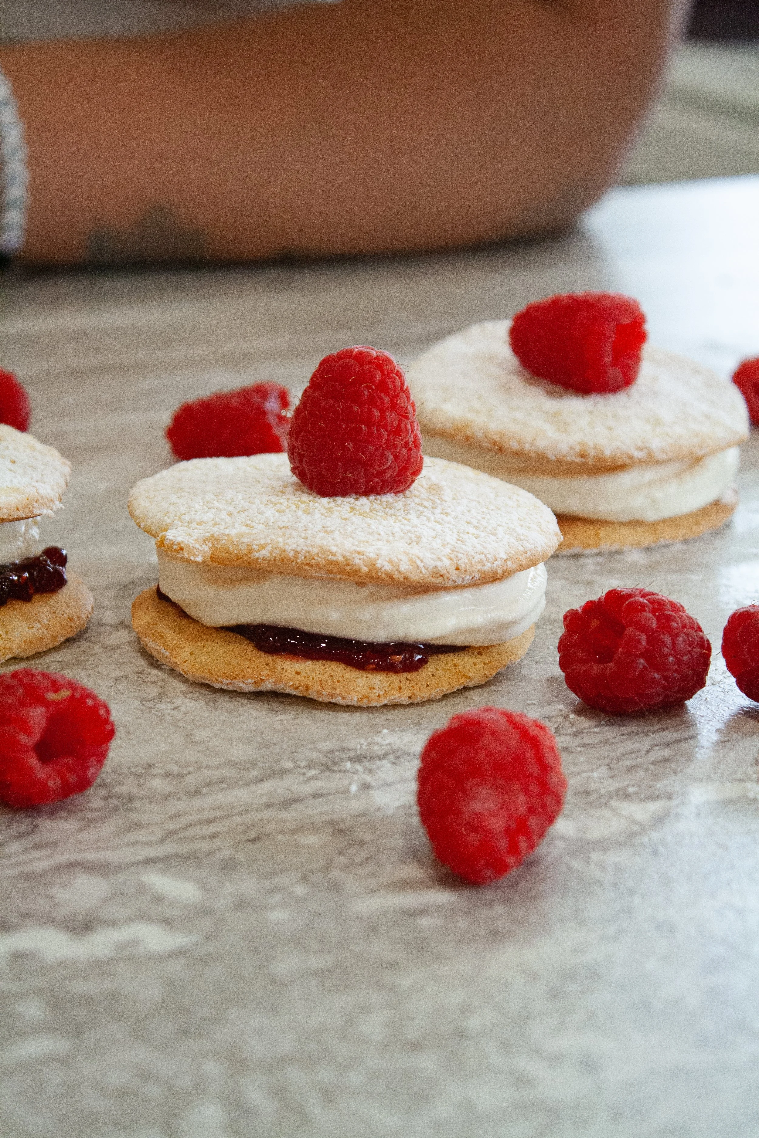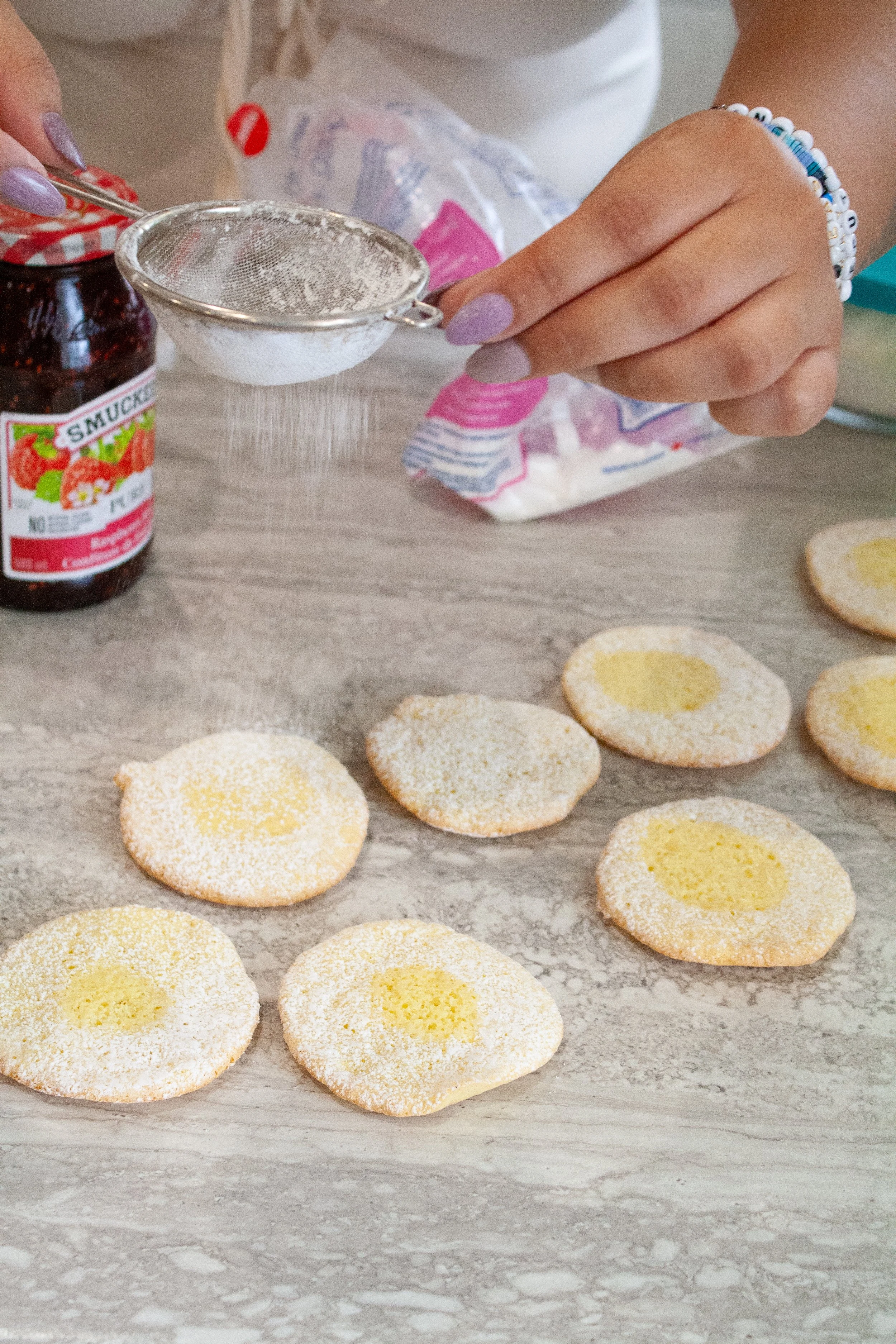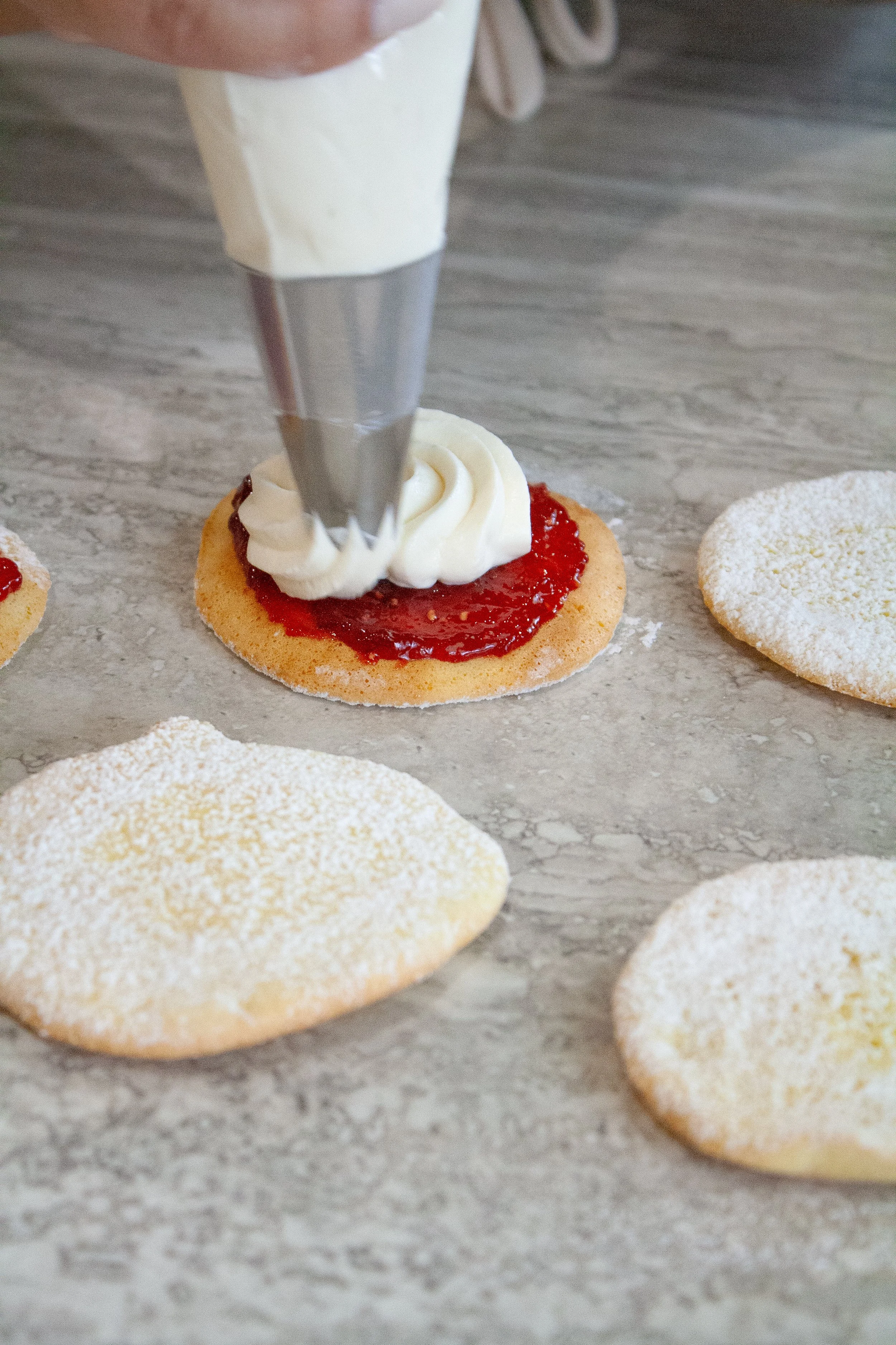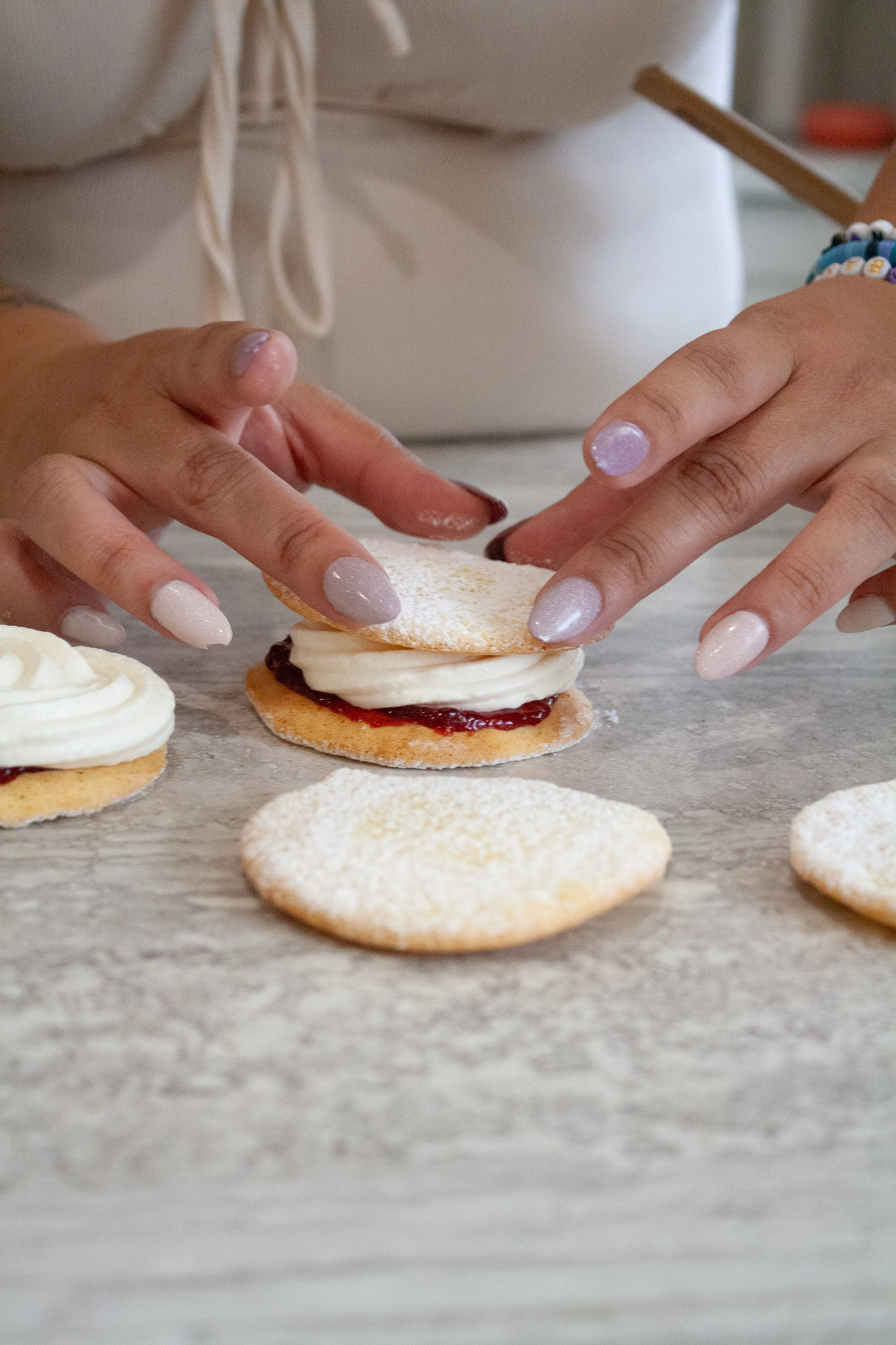 1. Pair cookies & spread jam on one or both sides.