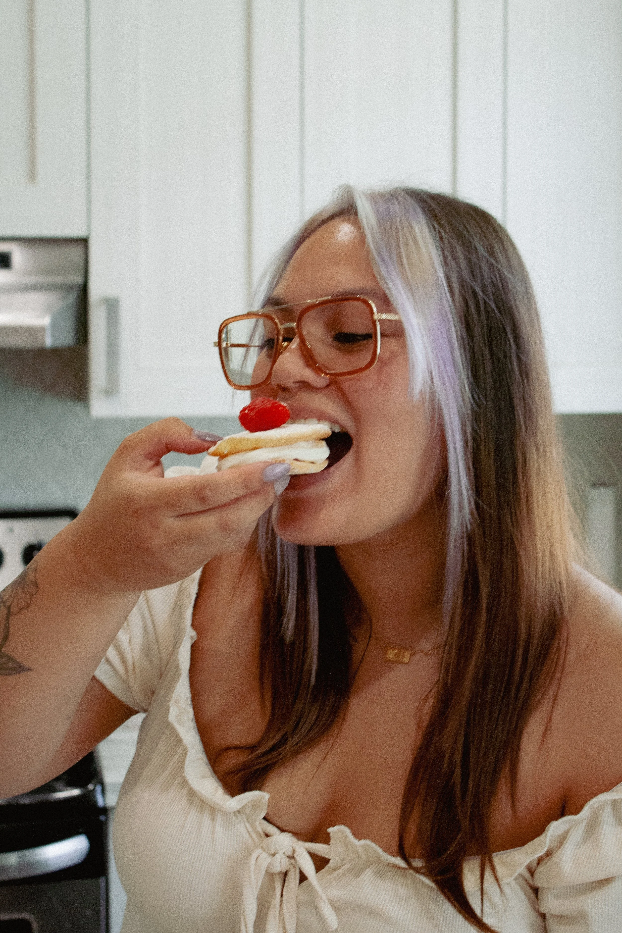 3. Sandwich together & top with fruit!